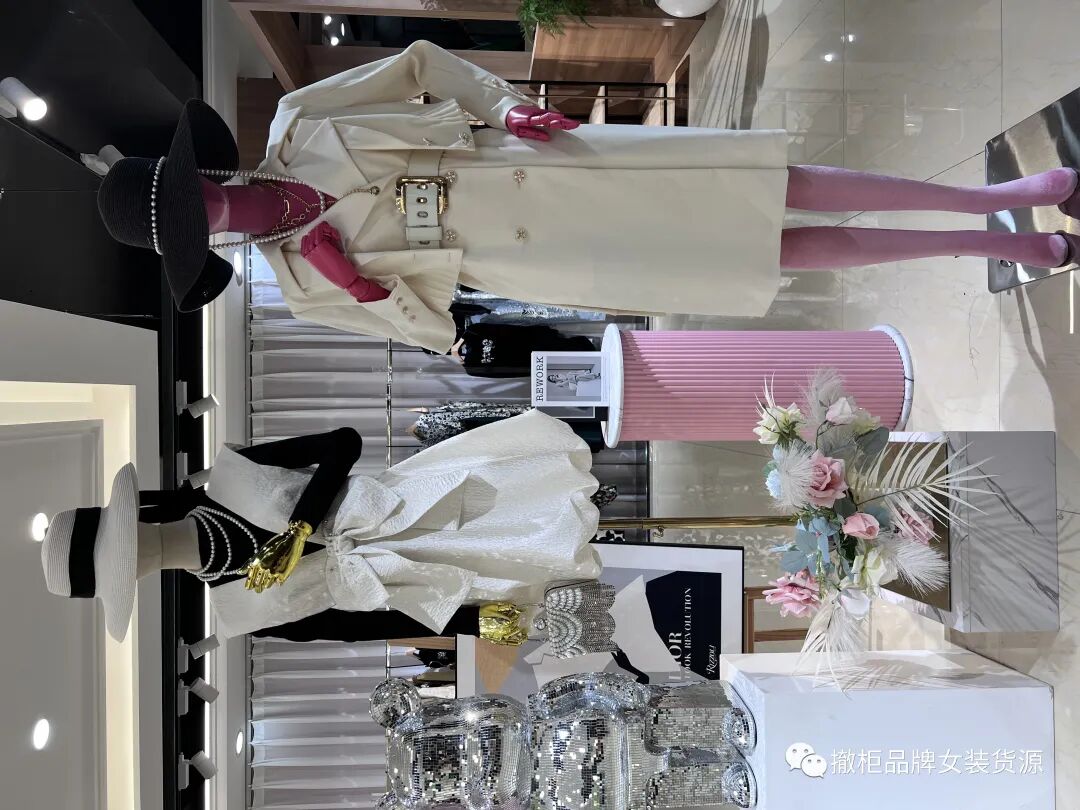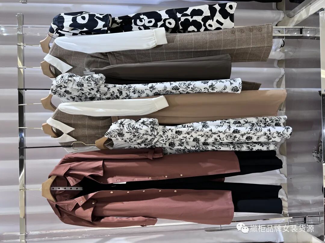 货品比例: 羽绒/双面呢/外套/风衣/套装/连衣裙44.5%,裤裙31%,上衣24.5%